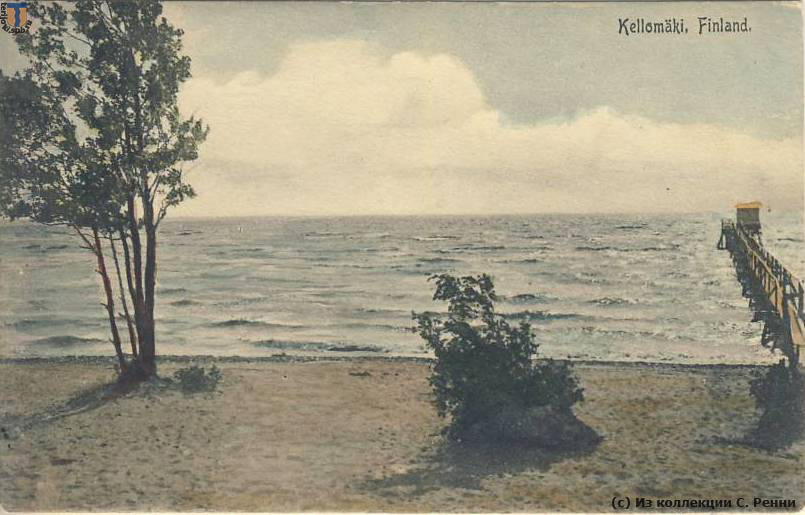 Изображение: На иллюстративной стороне открытки - берег моря и купальные мостки в Келломяки.