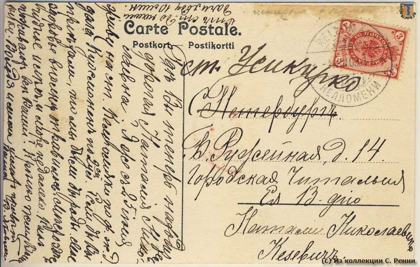 Штемпель отправителя (Келломяки): ??.09.1909 (дата по новому стилю)
