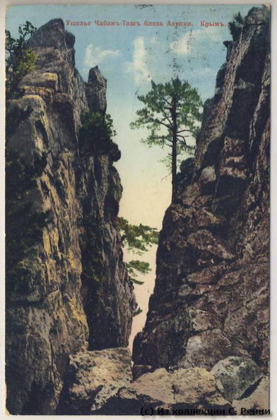 Изображение: На иллюстративной стороне открытки - ущелье Чабан-Таш близ Алупки.