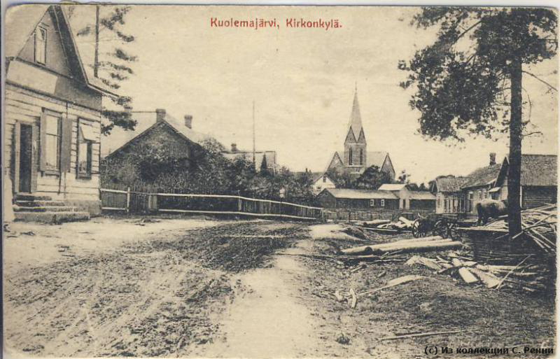 Изображение: На иллюстративной стороне открытки - Куолемаярви, церковная деревня, деревенская улица с видом на кирху. Открытка начала 1910-х гг.