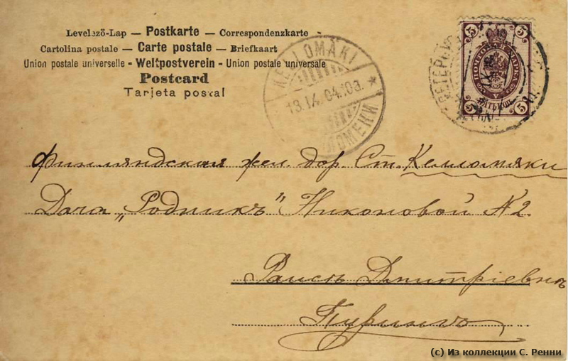 Штемпель п/о Келломяки: 13.09.1904 (по новому стилю).