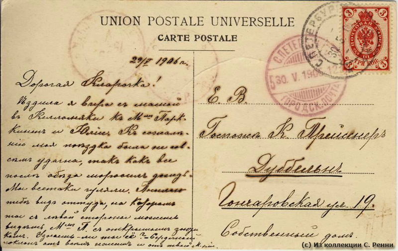 Штемпель отправителя (Петербург): 30.05.1906 (по старому стилю)