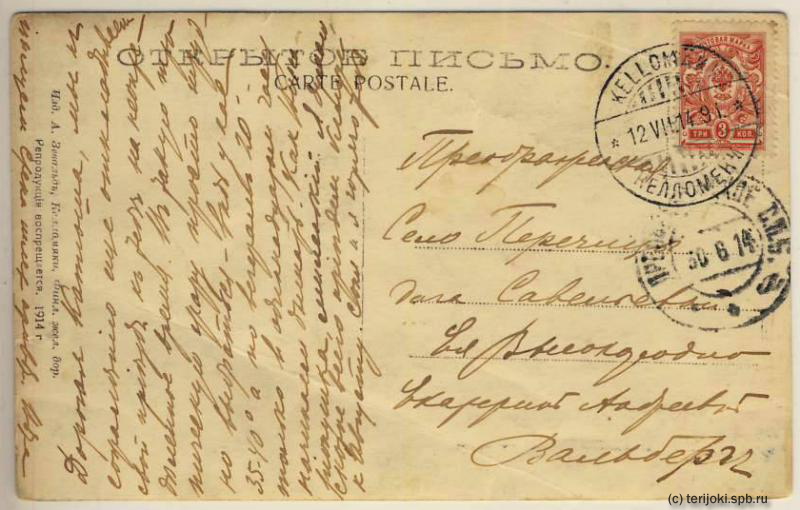 Штемпель отправителя (Келломяки): 12.07.1914 (дата по новому стилю)