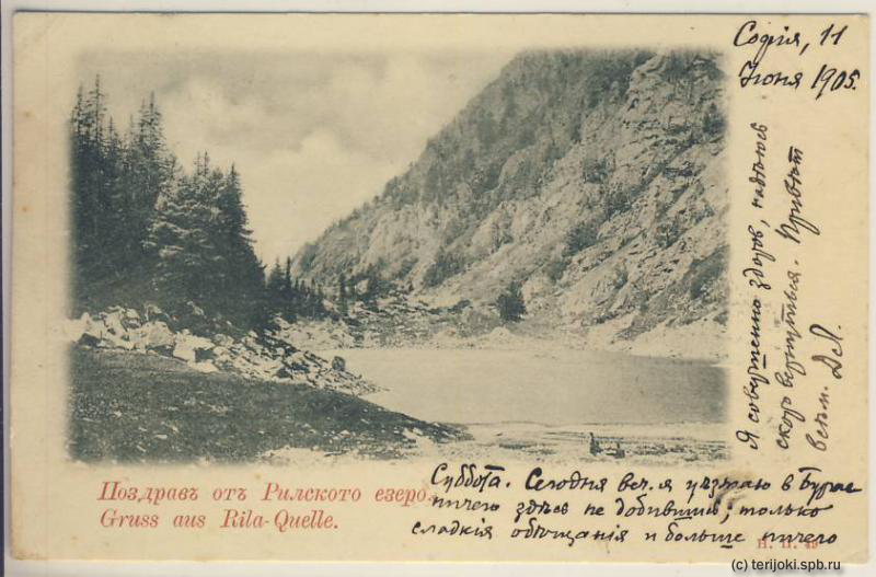 Изображение:  На иллюстративной стороне открытки (она же текстовая, старый формат открытого письма) -  Рильское озеро в Болгарии.