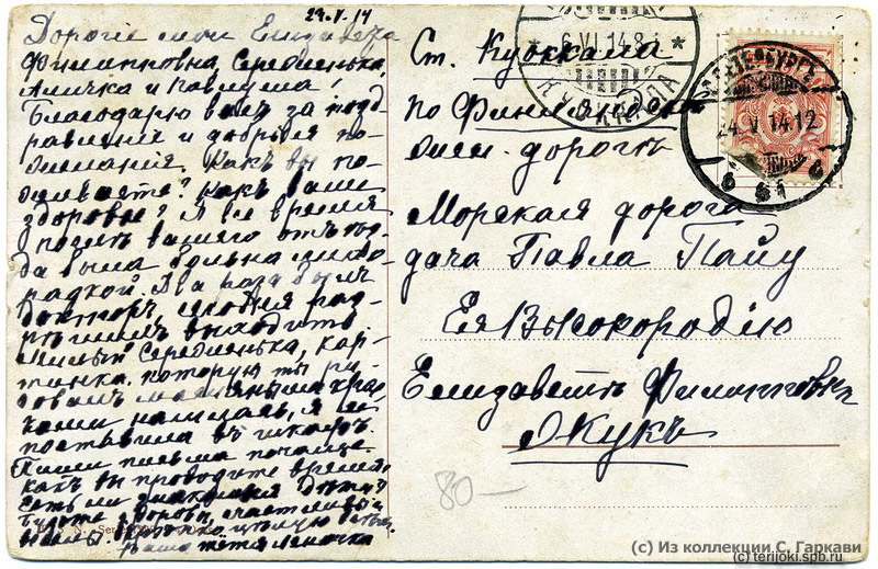Штемпель получателя (Куоккала): 06.06.1914 (дата по новому стилю).