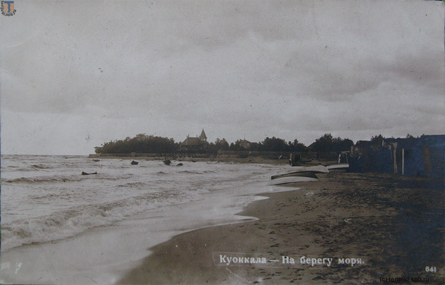 Изображение:  На иллюстративной стороне открытки - Куоккала, берег моря.