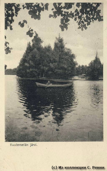 Изображение: На лицевой стороне открытки изображено катание на лодке по озеру в Куутерселькя (пос. Лебяжье). Издание, предположительно, Финляндия, начало 1910-х гг.