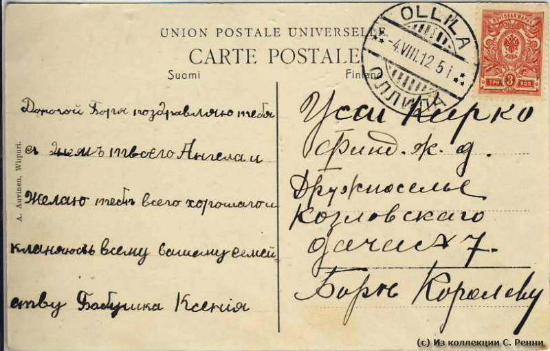 Штемпель отправителя (Оллила): 04.08.1912 (дата по новому стилю).