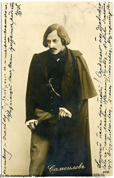 Изображение: На иллюстративной стороне открытки (она же текстовая - старый формат открытого письма) - актер Павел Васильевич Самойлов (1866-1931).