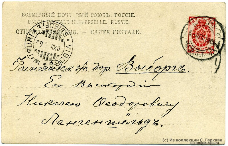 Штемпель получателя (Выборг): (2)0.12.1906 (дата по новому стилю).