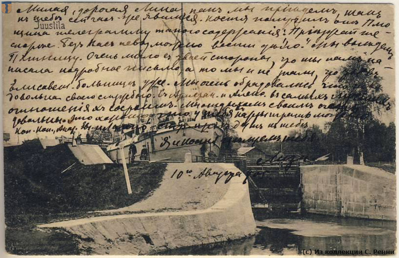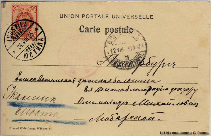 17. Открытка, отправленная в августе 1905 г. из Юстилы в С.-Петербург О. М. Любарской.