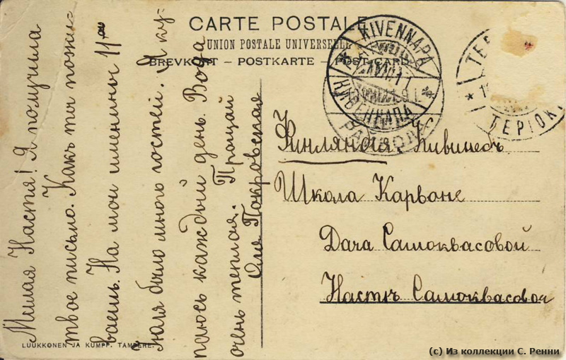 Адрес: Финляндия, Кивинеб (Кивеннапа), Школа Карвоне (Карванс?), Дача Самоквасовой, Насте