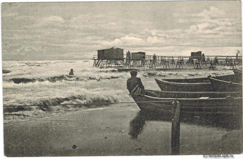 Изображение: На иллюстративной стороне открытки - Терийоки, берег моря. Открытка издателя Сууронена, Терийоки.