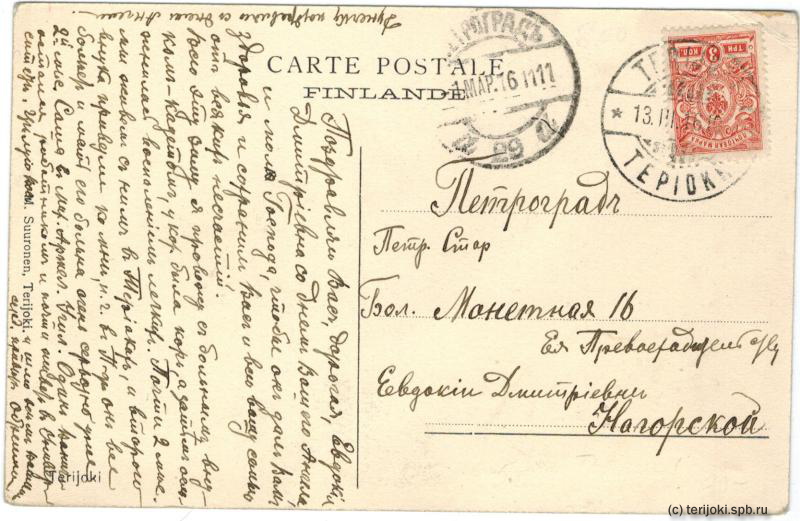 Штемпель отправителя (Терийоки): 13.03.1916 (дата по новому стилю).