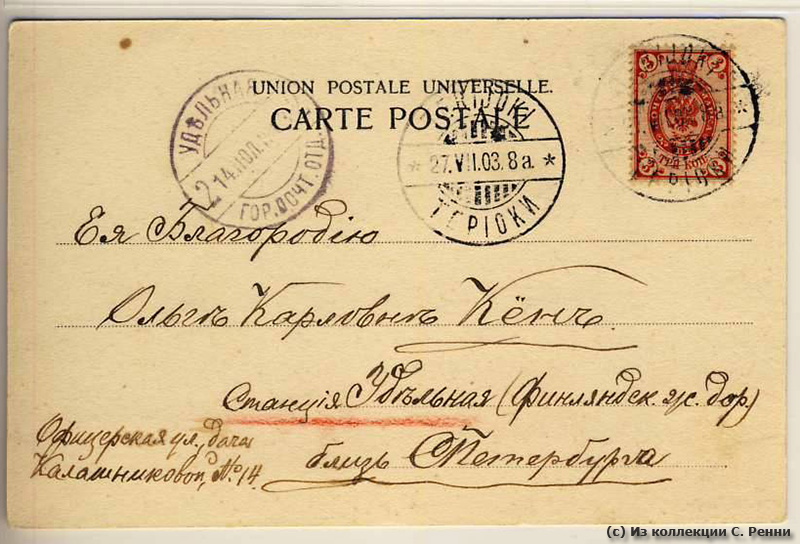 Штемпель отправителя (Терийоки): 27.07.1903 (дата по новому стилю).