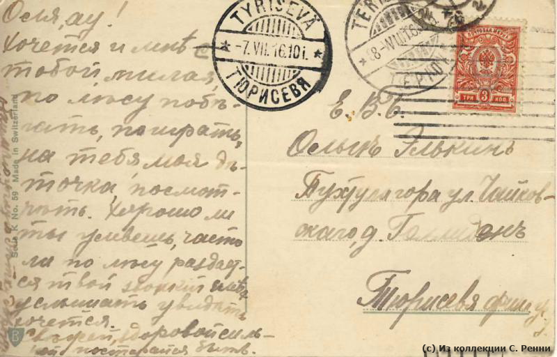 Штемпель транзитный (Тюрисевя): 07.07.1916 (дата по новому стилю).