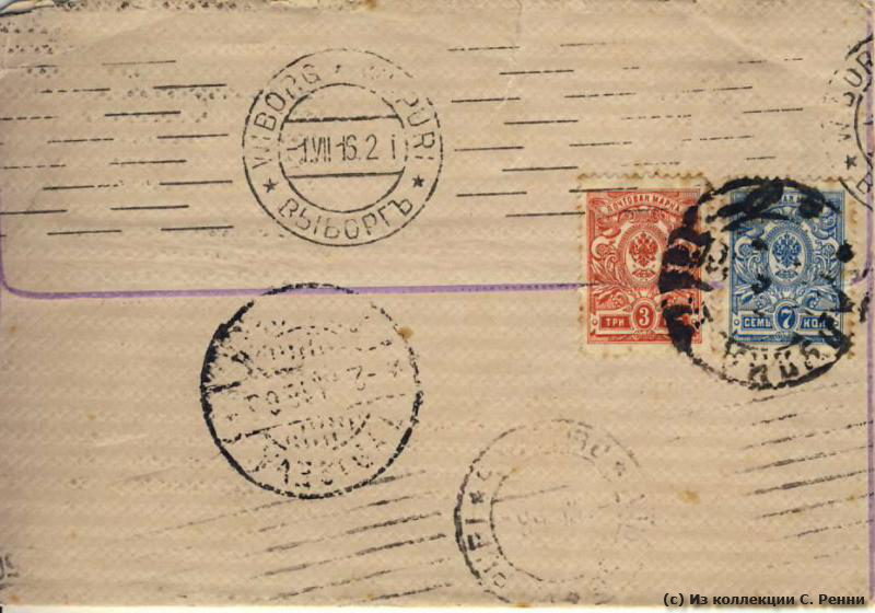 Штемпель транзитный (Выборг): 01.07.1916 (дата по новому стилю).