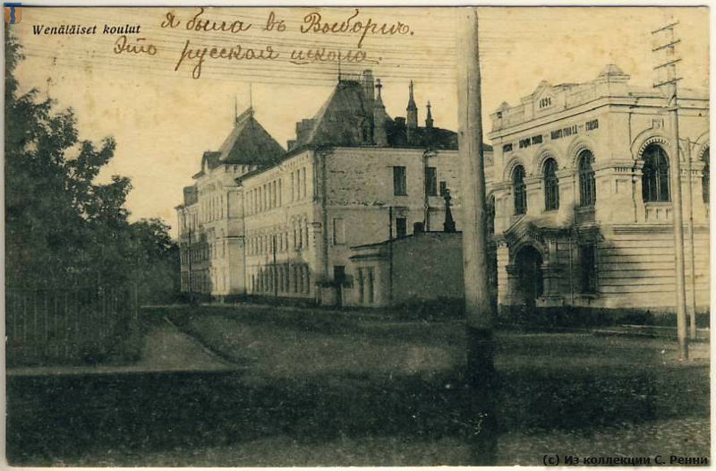 Изображение: На иллюстративной стороне открытки - русская школа в Выборге.