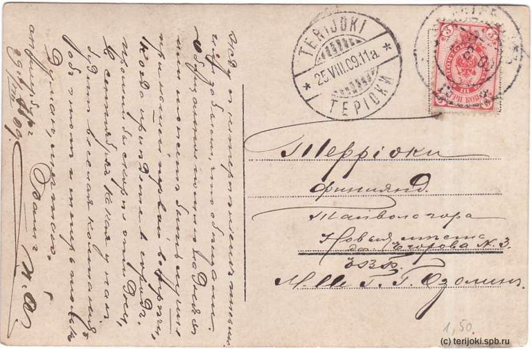 Штемпель получателя (Терийоки): 25.08.1909 (дата по новому стилю)