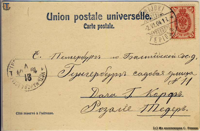Штемпель отправителя (Терийоки): 02.06.1901 (дата по новому стилю)