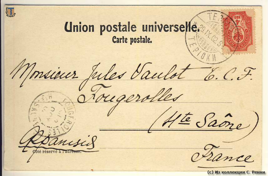 Штемпель отправителя (Терийоки): 29.09.1902 (дата по новому стилю)