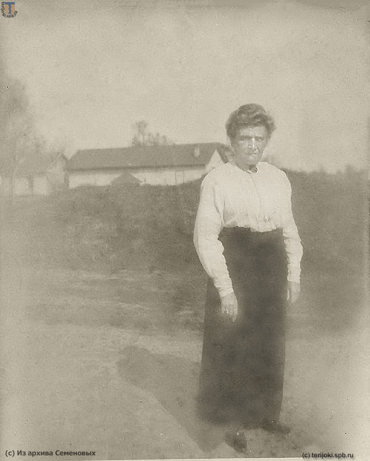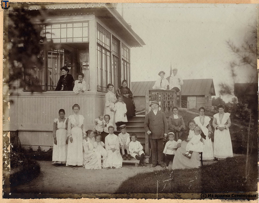 На семейной фотографии, сделанной еще при жизни С. Т. Семёнова, то есть до 1909 г., изображена семья Семёновых на крыльце своей дачи в Терийоках. В центре с тросточкой - купец 2-й гильдии потомственный почетный гражданин С. Т. Семенов. На стуле сидит Ольга Алексеевна Семенова, жена купца. На перилах, на верху сидит старший сын купца Михаил Сергеевич Семенов 1864 г.р., рядом его жена Мария Григорьевна 1876 г.р.