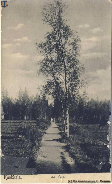 Изображенный на иллюстративной стороне открытки парк Ридингера располагался в Куоккала на обширных землях, принадлежавших семье Ридингер.